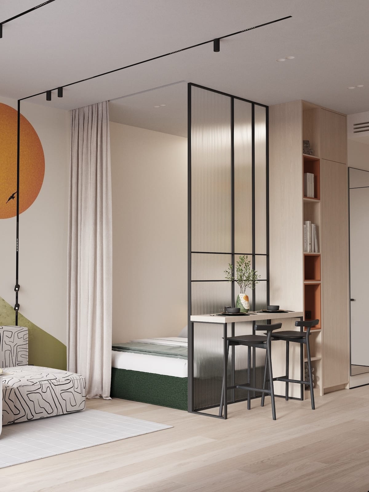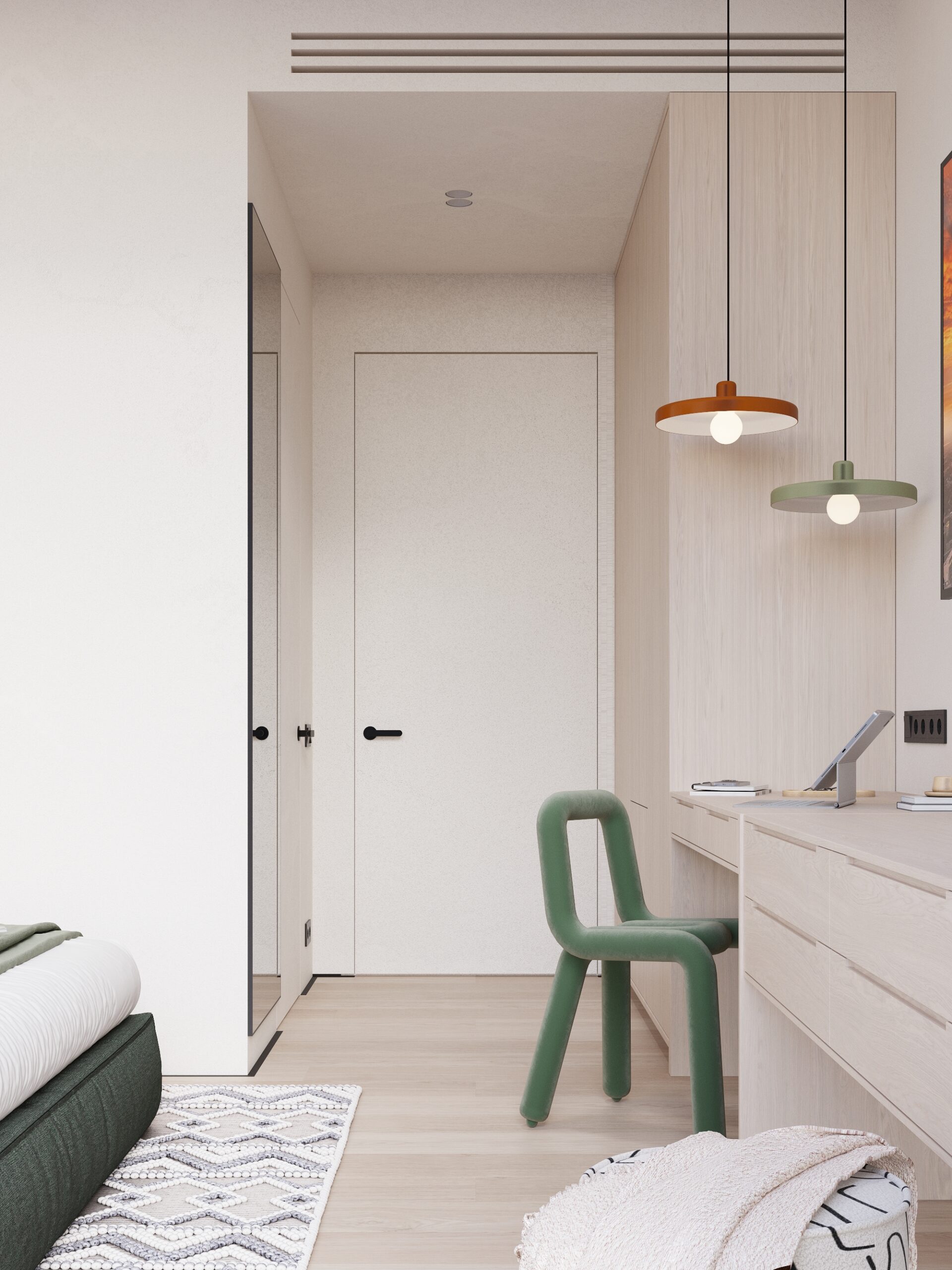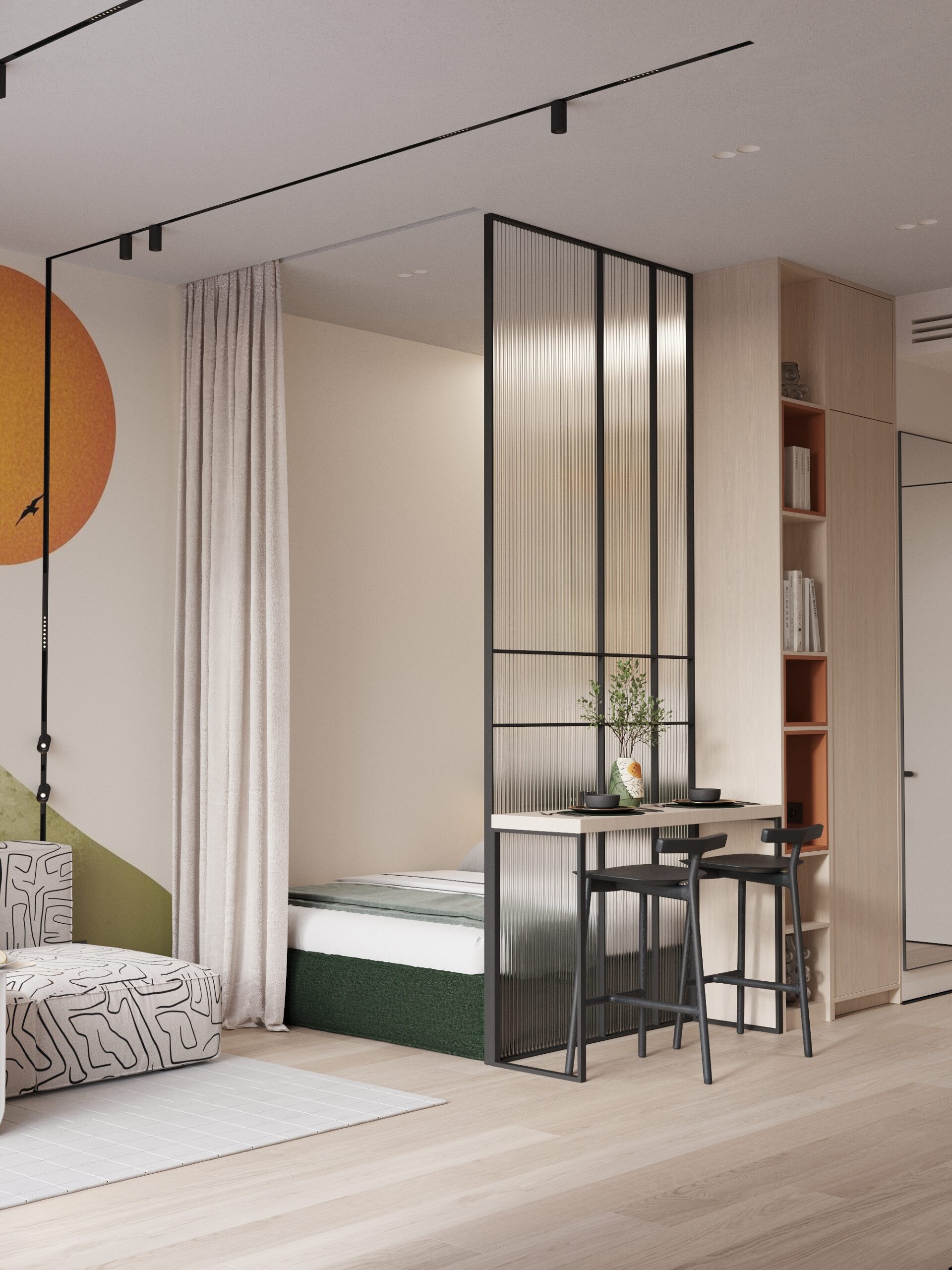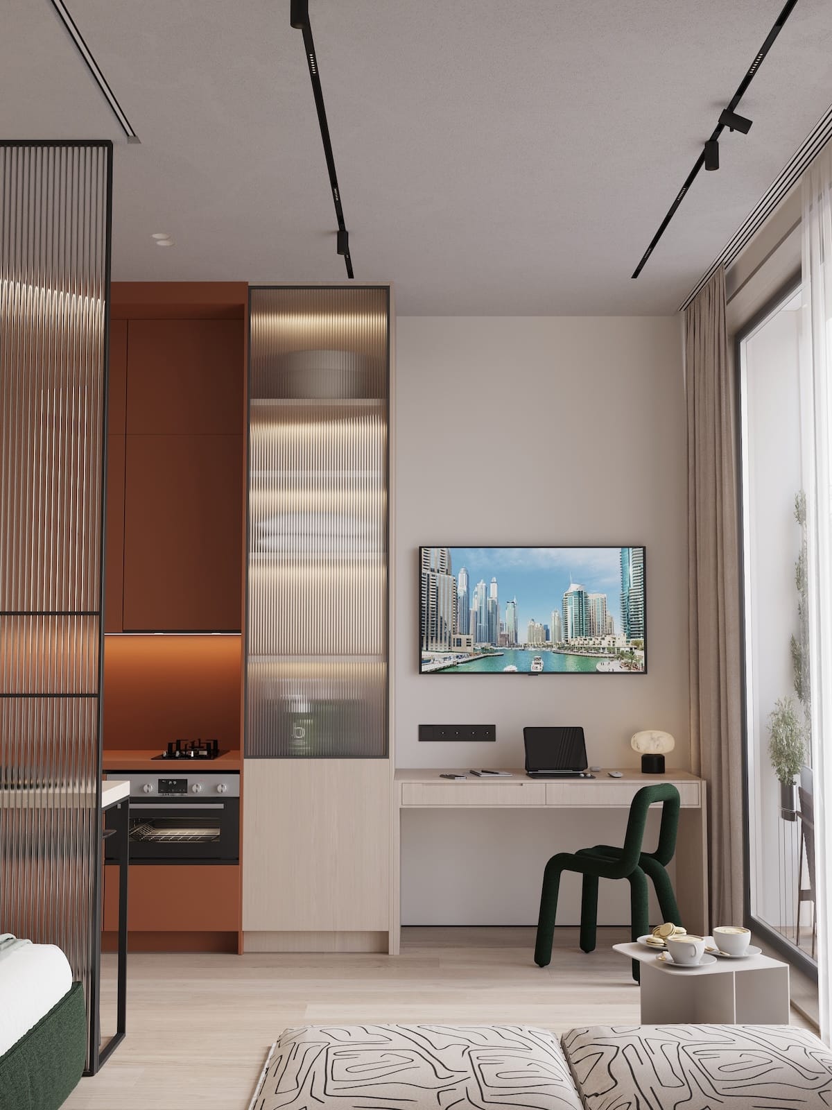 Cozy, fully furnished blue or green studio who love comfort and privacy. Your vibe and space. Access stylish shared spaces and plug into the ROOM8 community in the heart of Dubai
