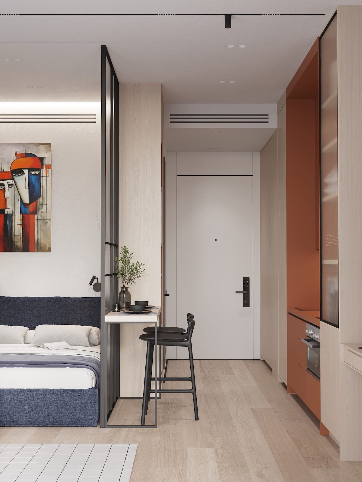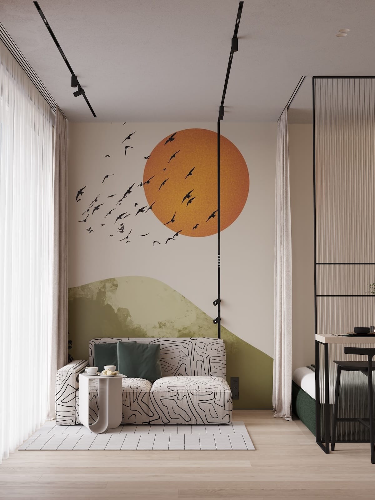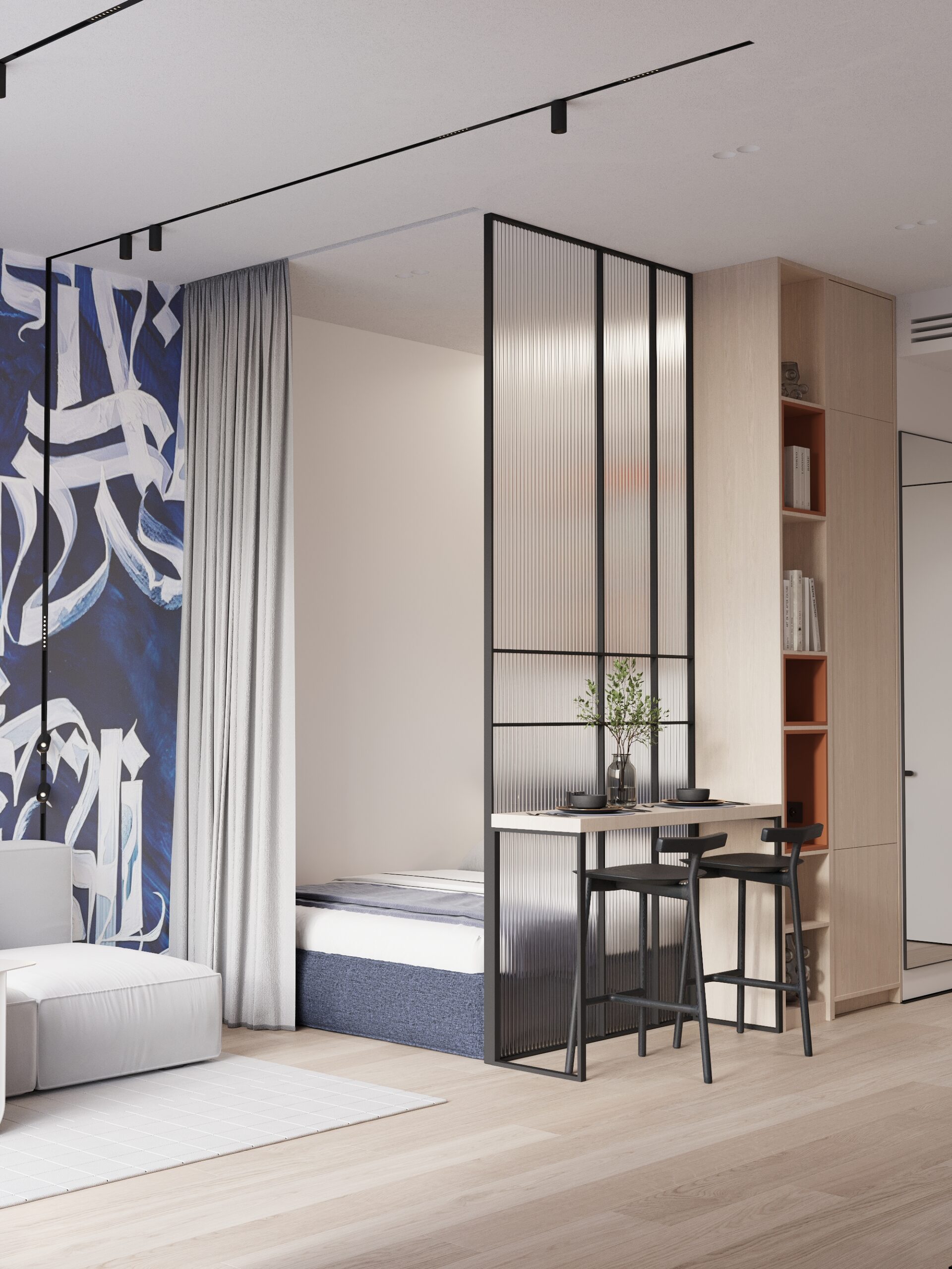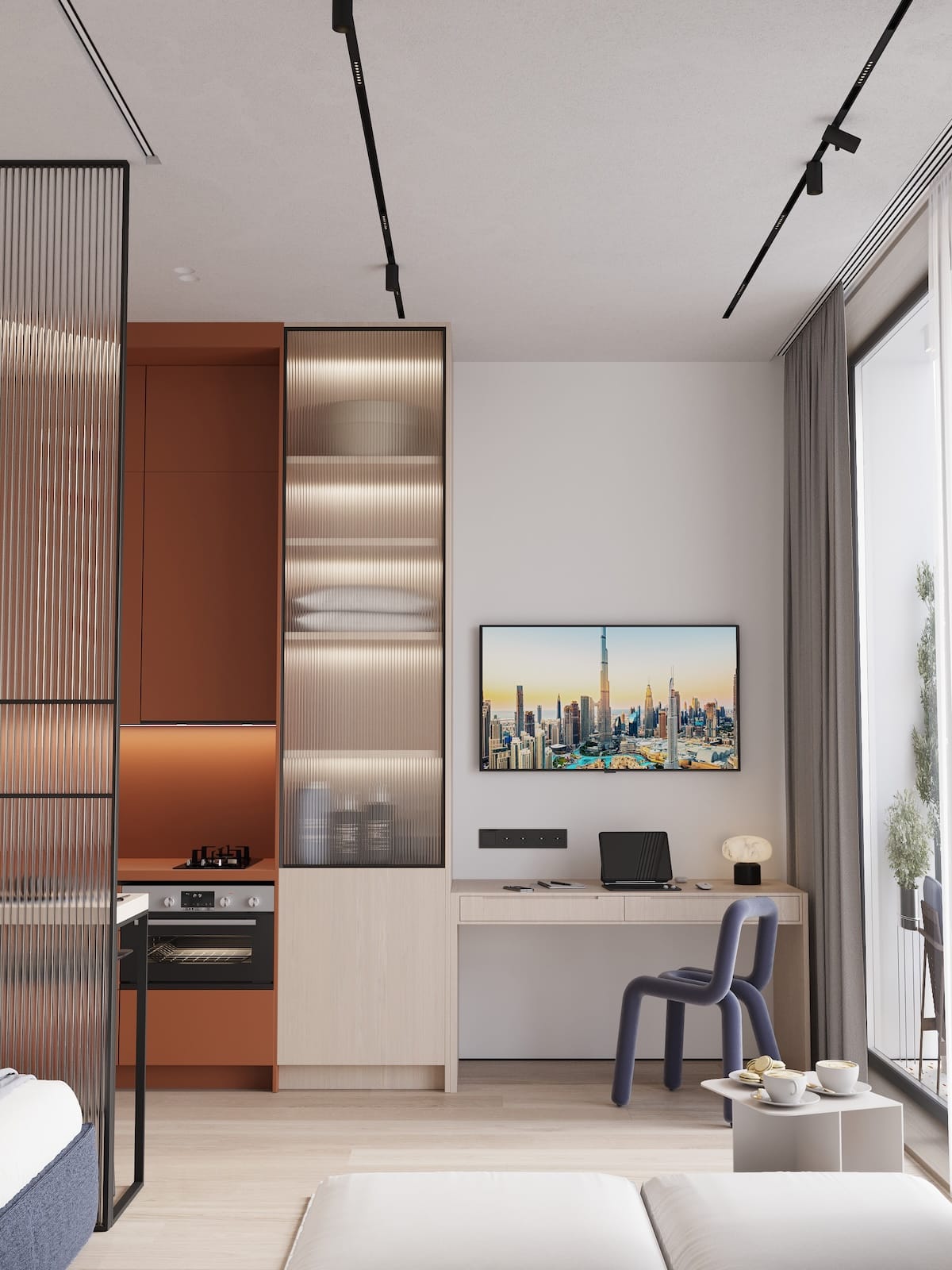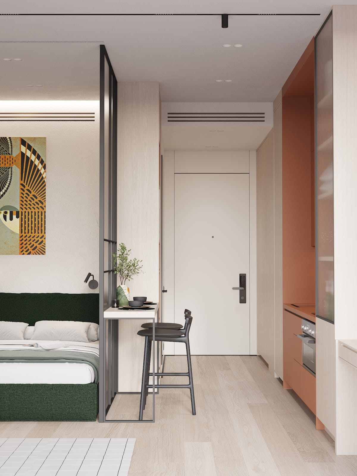 Cozy, fully furnished blue or green studio who love comfort and privacy. Your vibe and space. Access stylish shared spaces and plug into the ROOM8 community in the heart of Dubai