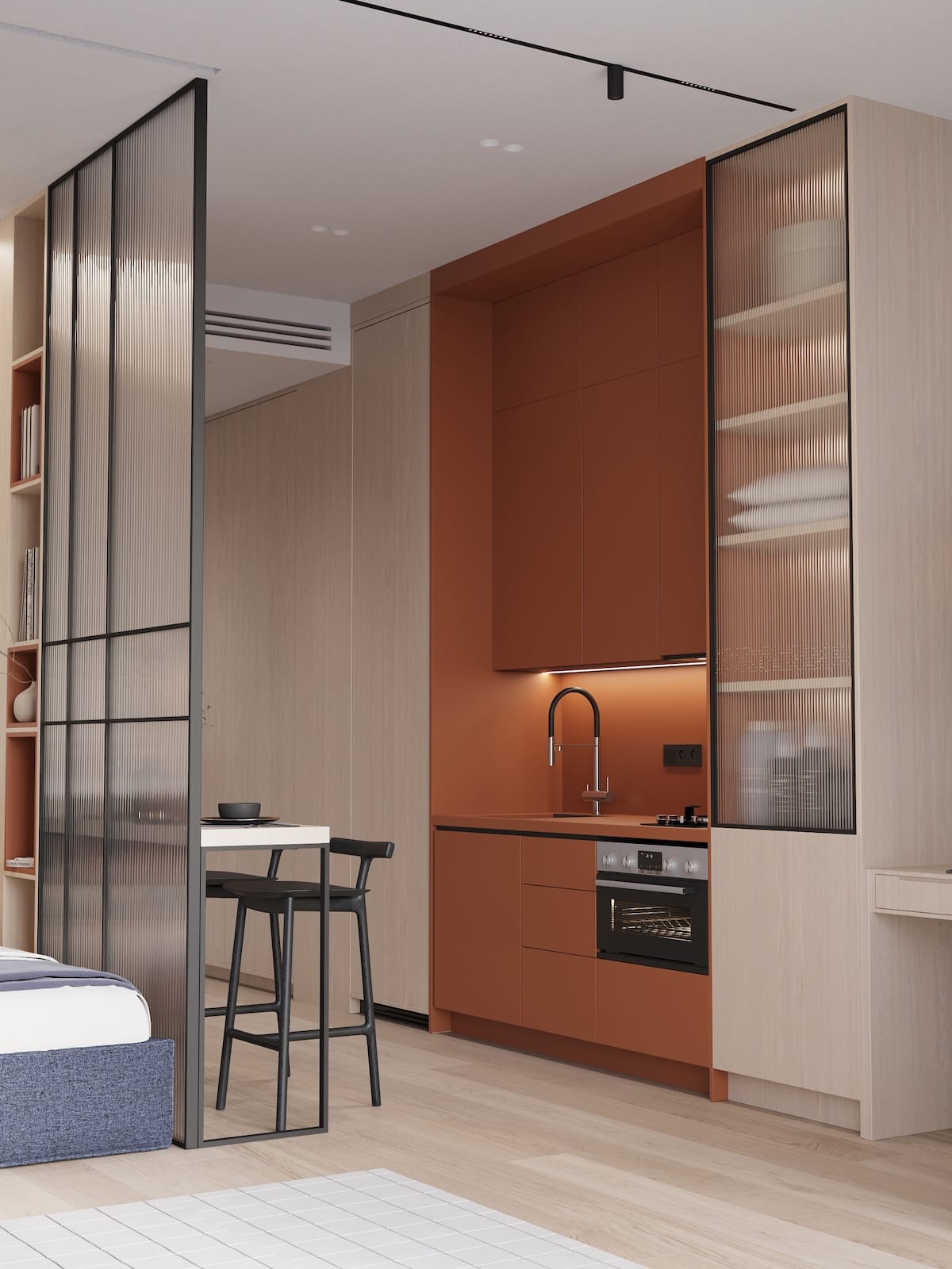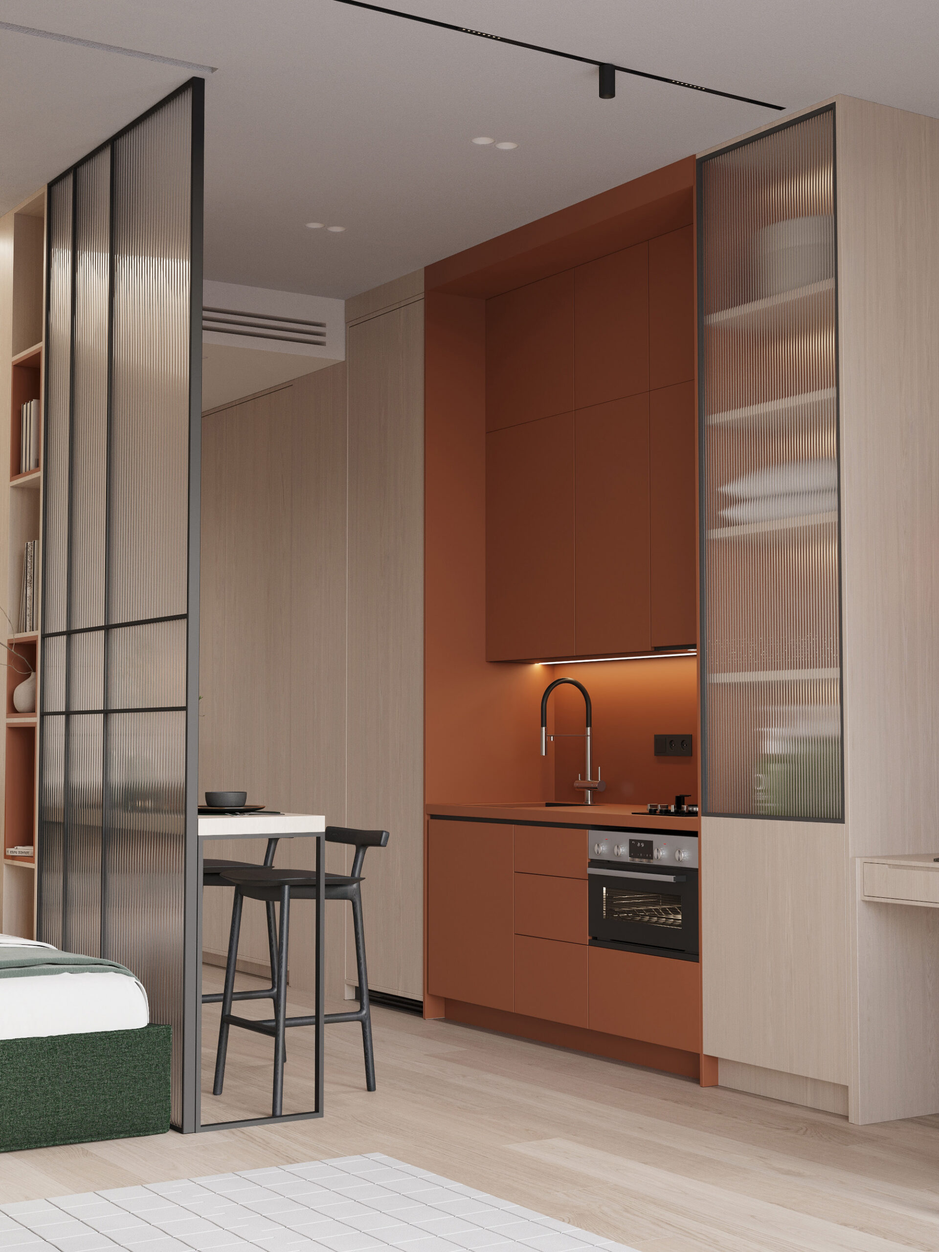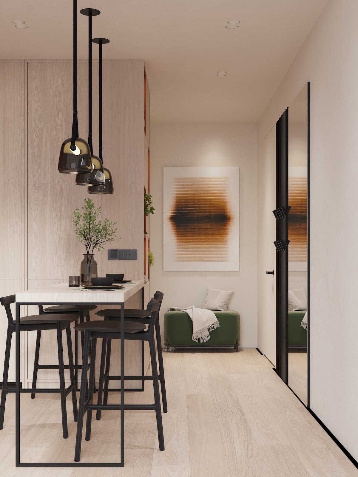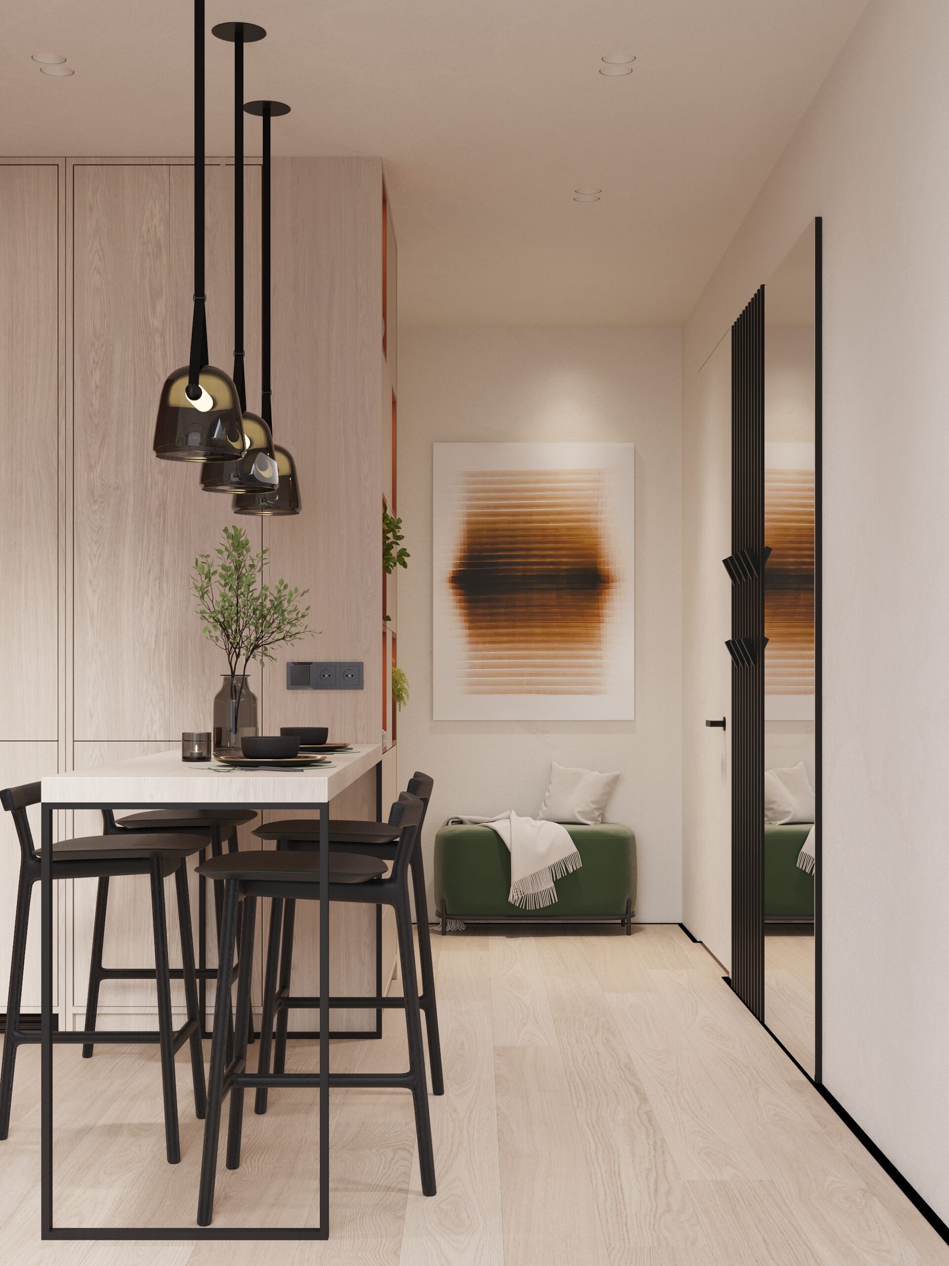 Cozy, fully furnished blue or green studio who love comfort and privacy. Your vibe and space. Access stylish shared spaces and plug into the ROOM8 community in the heart of Dubai
