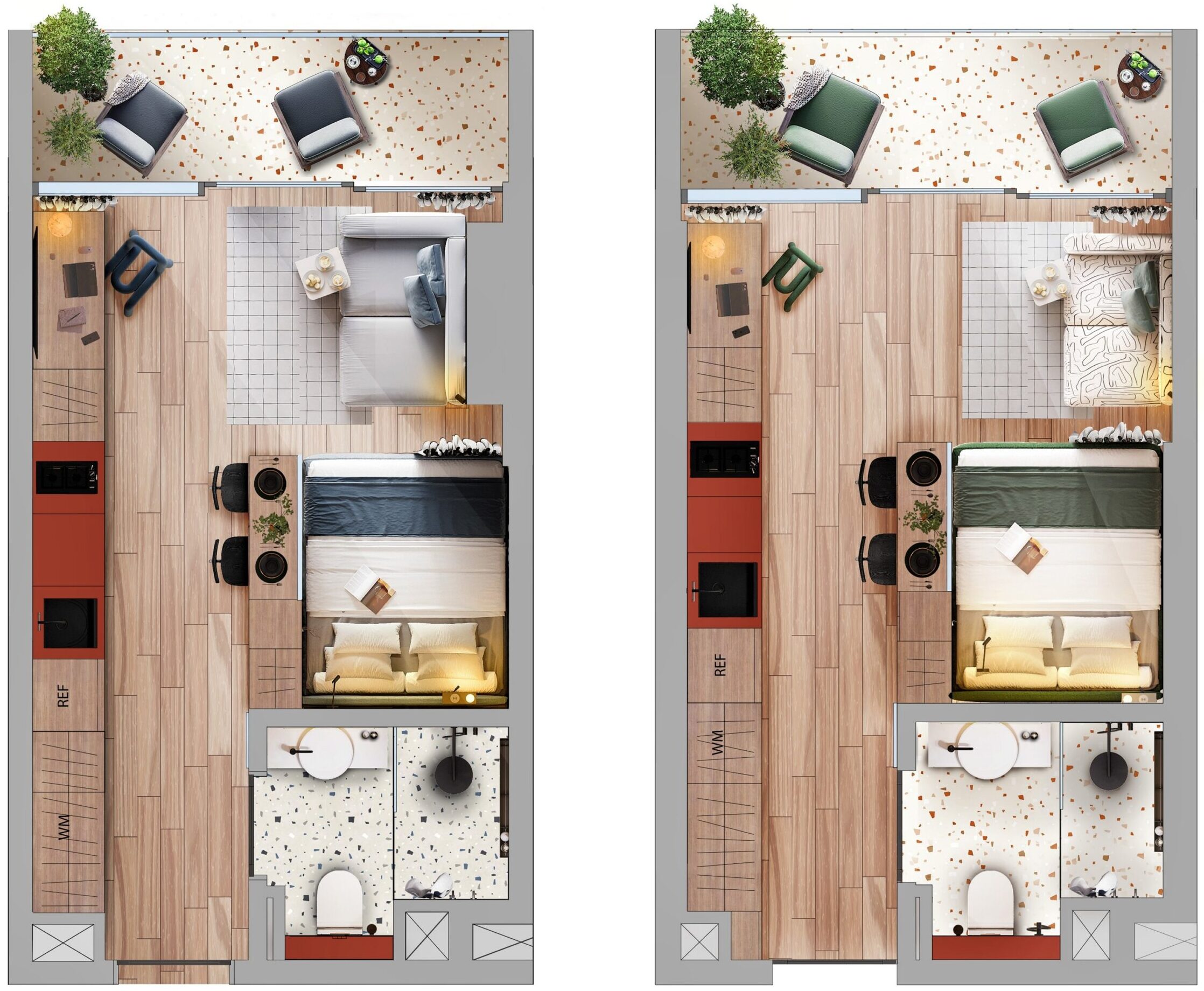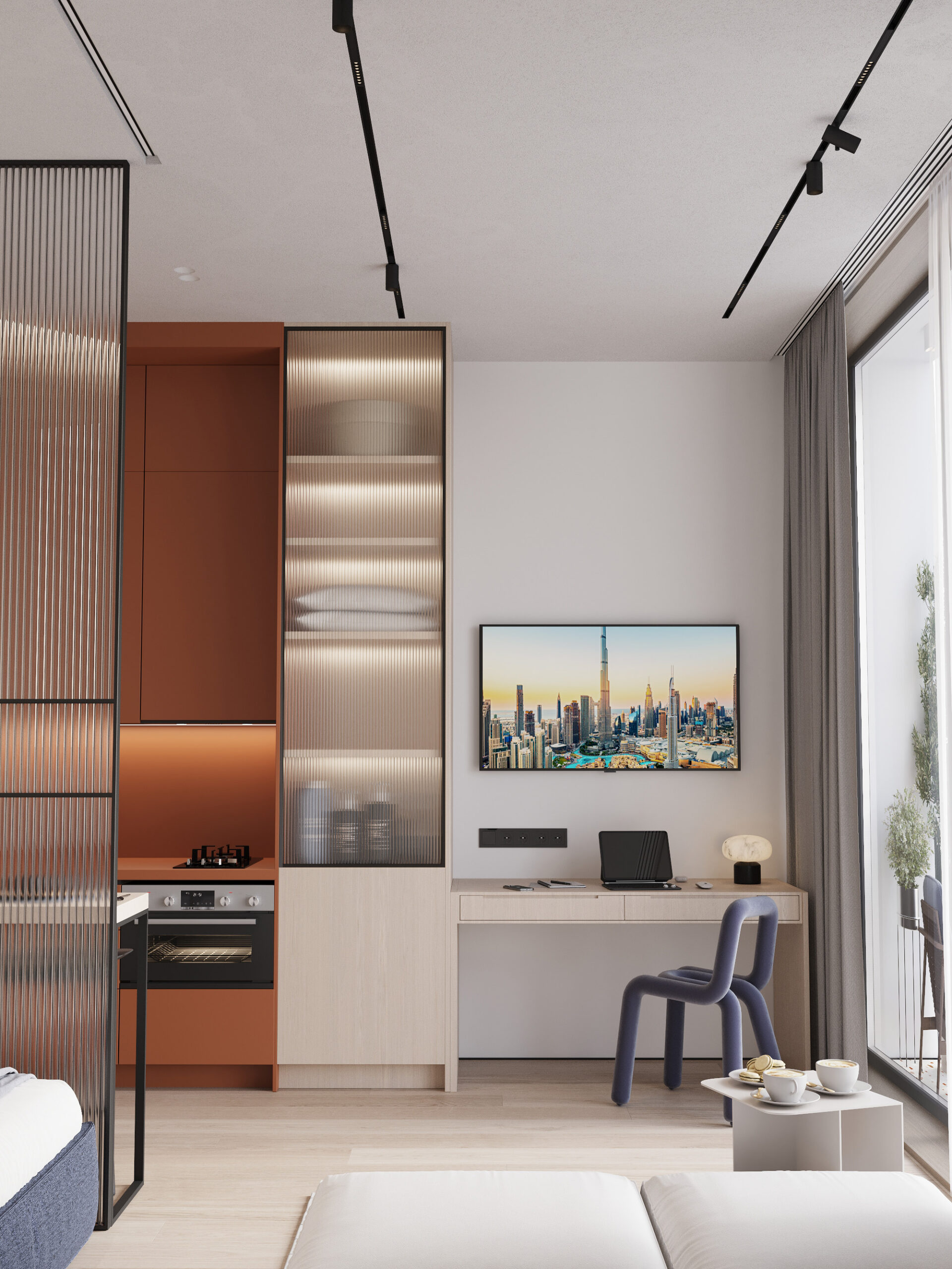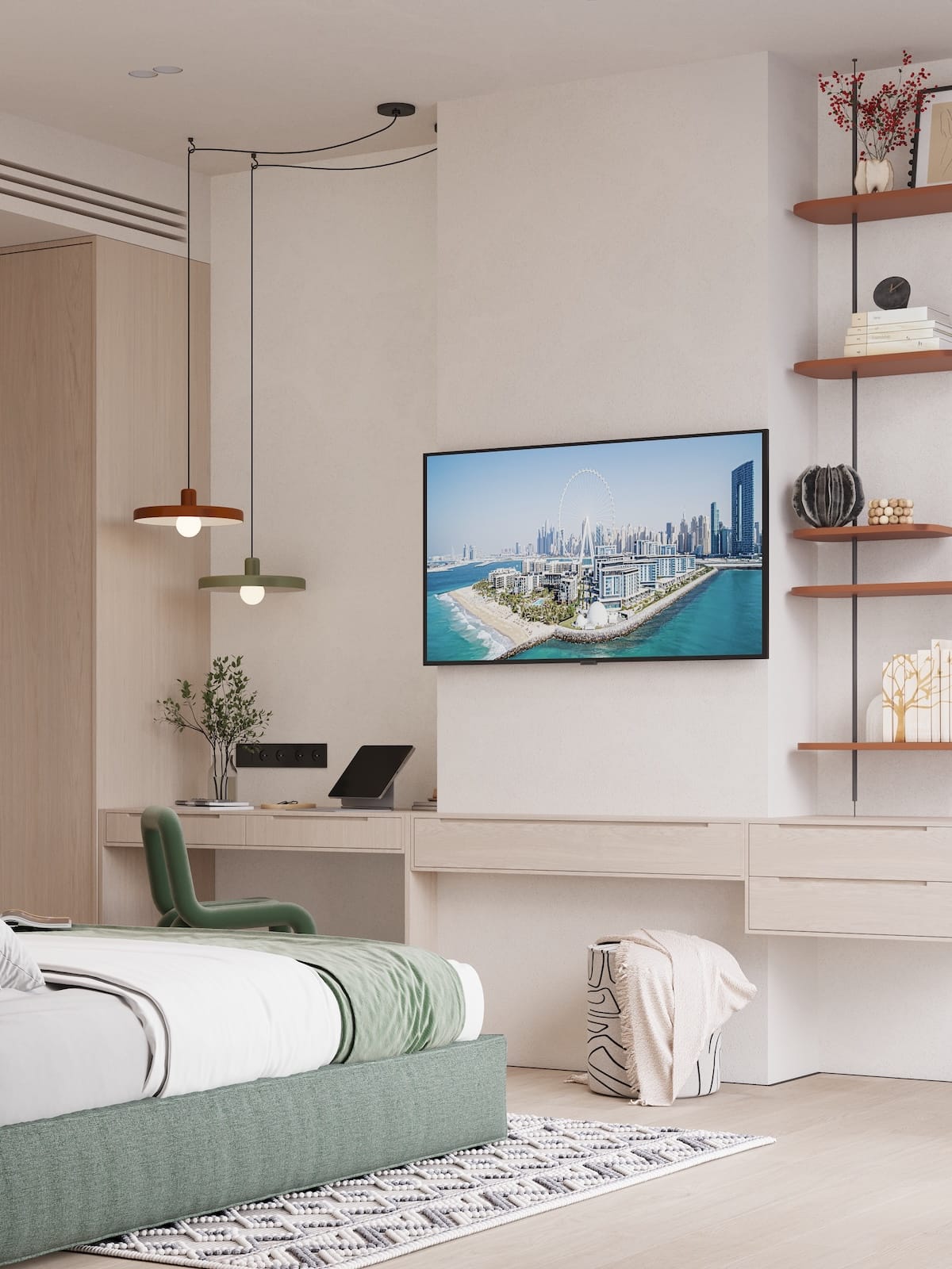 Cozy, fully furnished blue or green 1 Bedroom apartment who love comfort and privacy. Access stylish shared spaces and plug into the ROOM8 community in the heart of Dubai