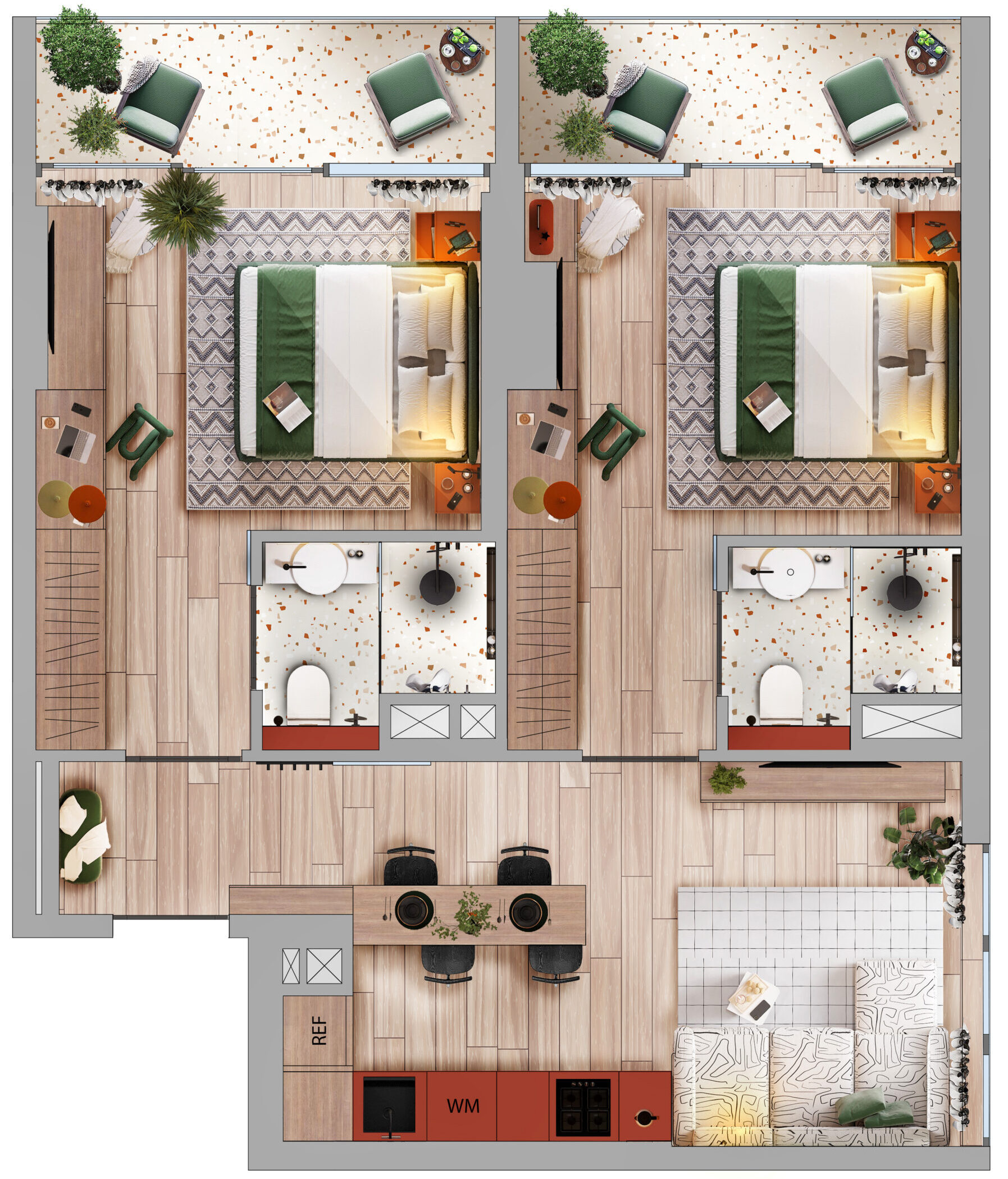 Cozy, fully furnished 2 bedroom apartment who love comfort and privacy. Perfect to share. Access stylish shared spaces and plug into the ROOM8 community in the heart of Dubai